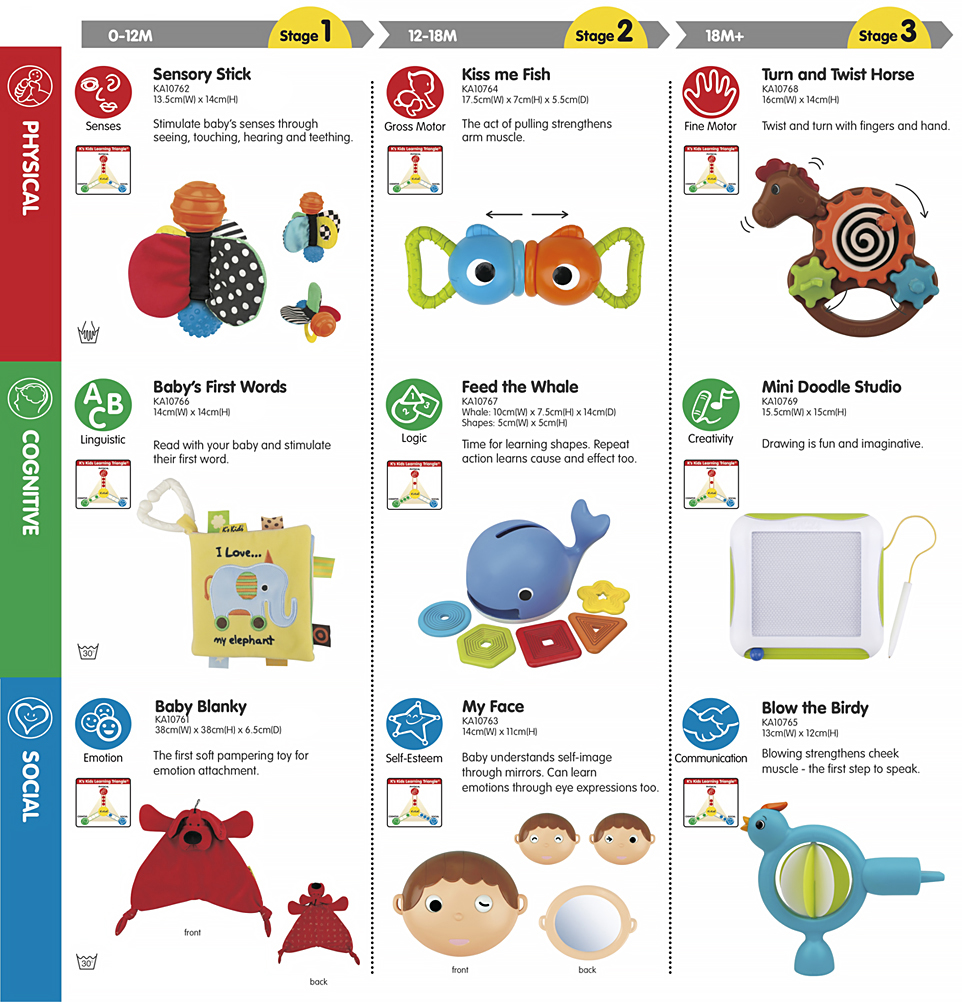 Stimulate baby's senses through seeing, touching, hearing and teething.